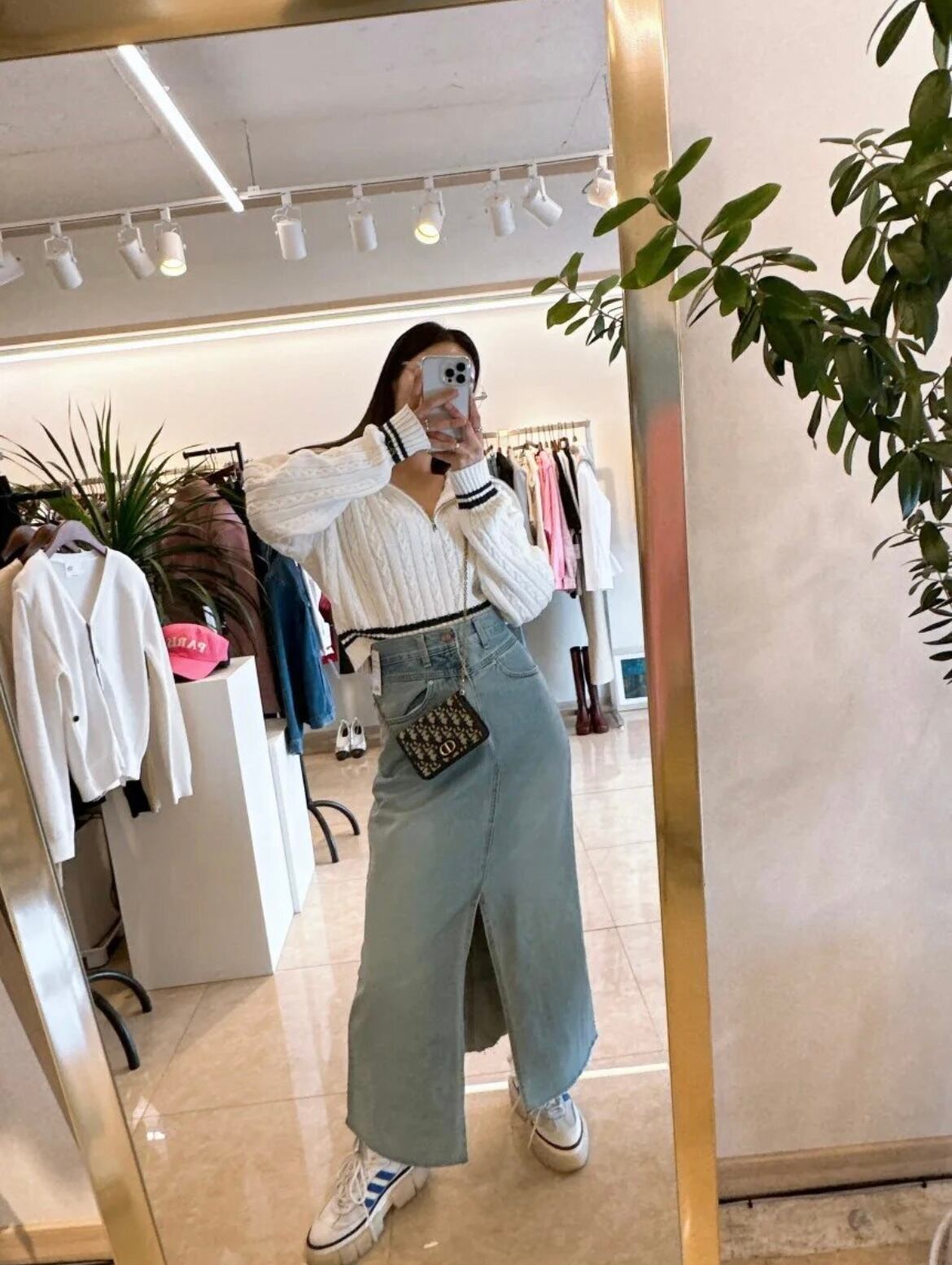 シャツ × ニットキャミ × デニムロングスカートの3セット♪